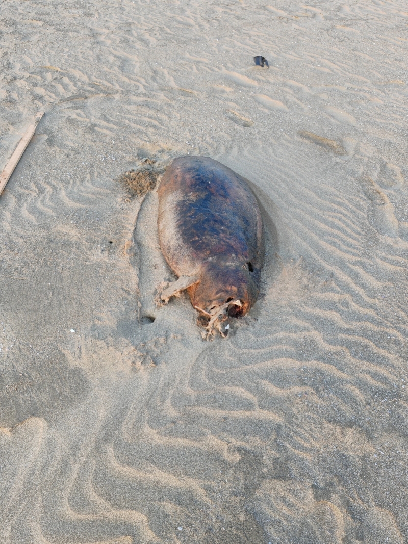 首先,印太江豚和儒艮都没有背鳍。从公开的照片看,该动物腹部鼓胀,确实像儒艮那种似“水桶”一样圆润的身材。而且头部已经完全腐烂,几乎看不出来形状。原本属于鼠海豚的精致面部特征已经模糊。在这种情况下,剩下的圆钝轮廓很容易被看作儒艮那种宽阔的口吻部。