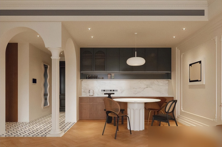 极简风倒是干净,可住久了总觉得缺了点儿人情味,轻法式混搭点复古元素,反倒像熬了多年的老汤,越品越有滋味。